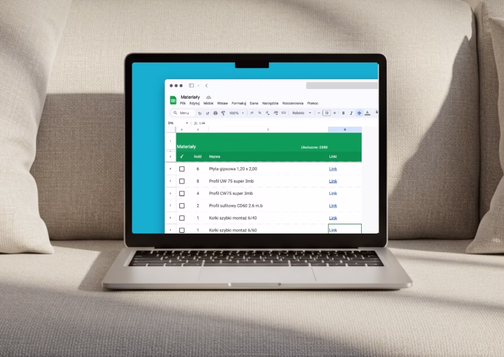 Przygotowanie listy i weryfikacja techniczna produktów to fundament naszej współpracy. Dzięki temu oszczędzasz czas, a my mamy pewność, że pracujemy na sprawdzonych materiałach.